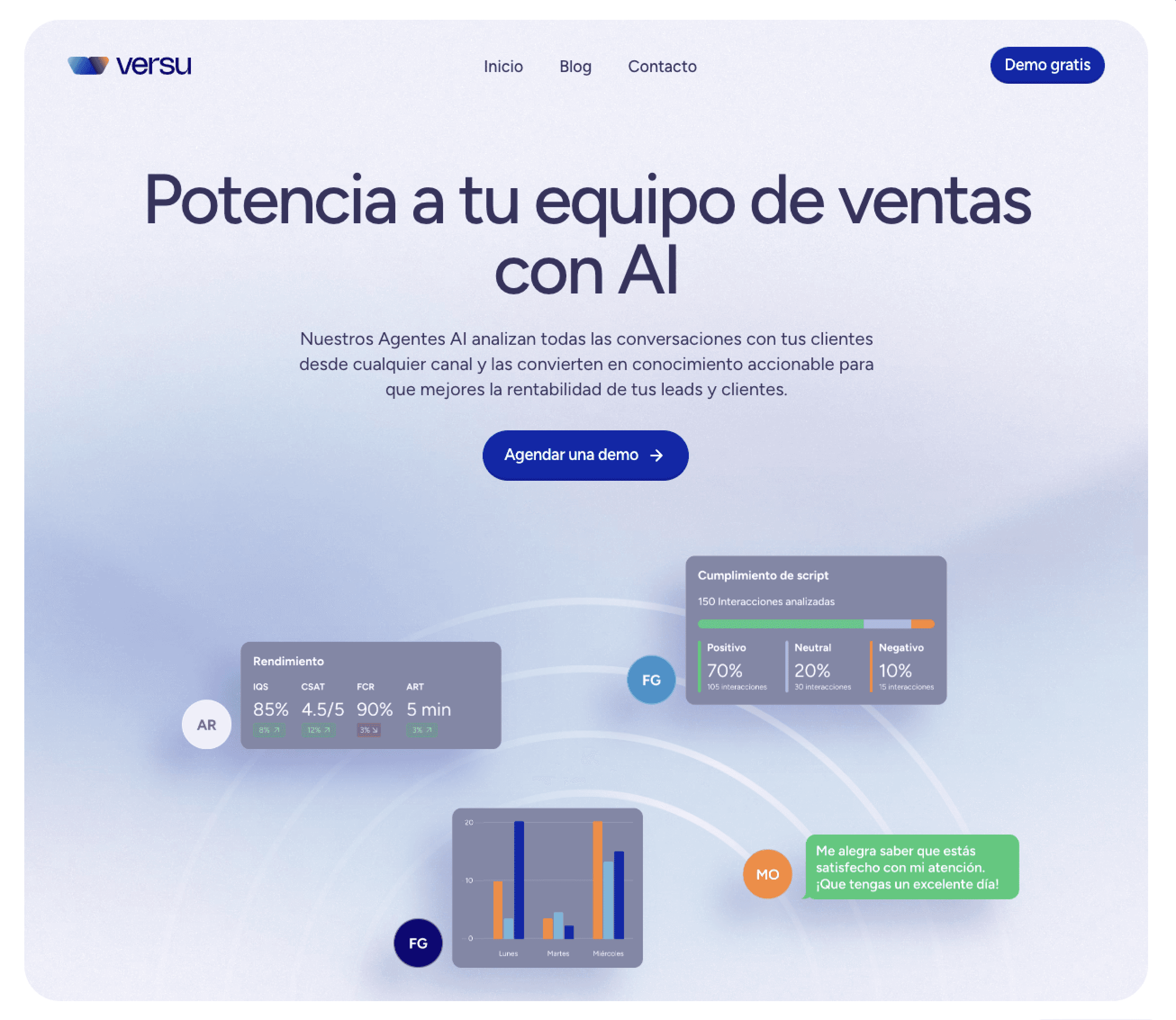 Sitio web de una startup que ofrece agentes de IA para monitorear equipos de ventas